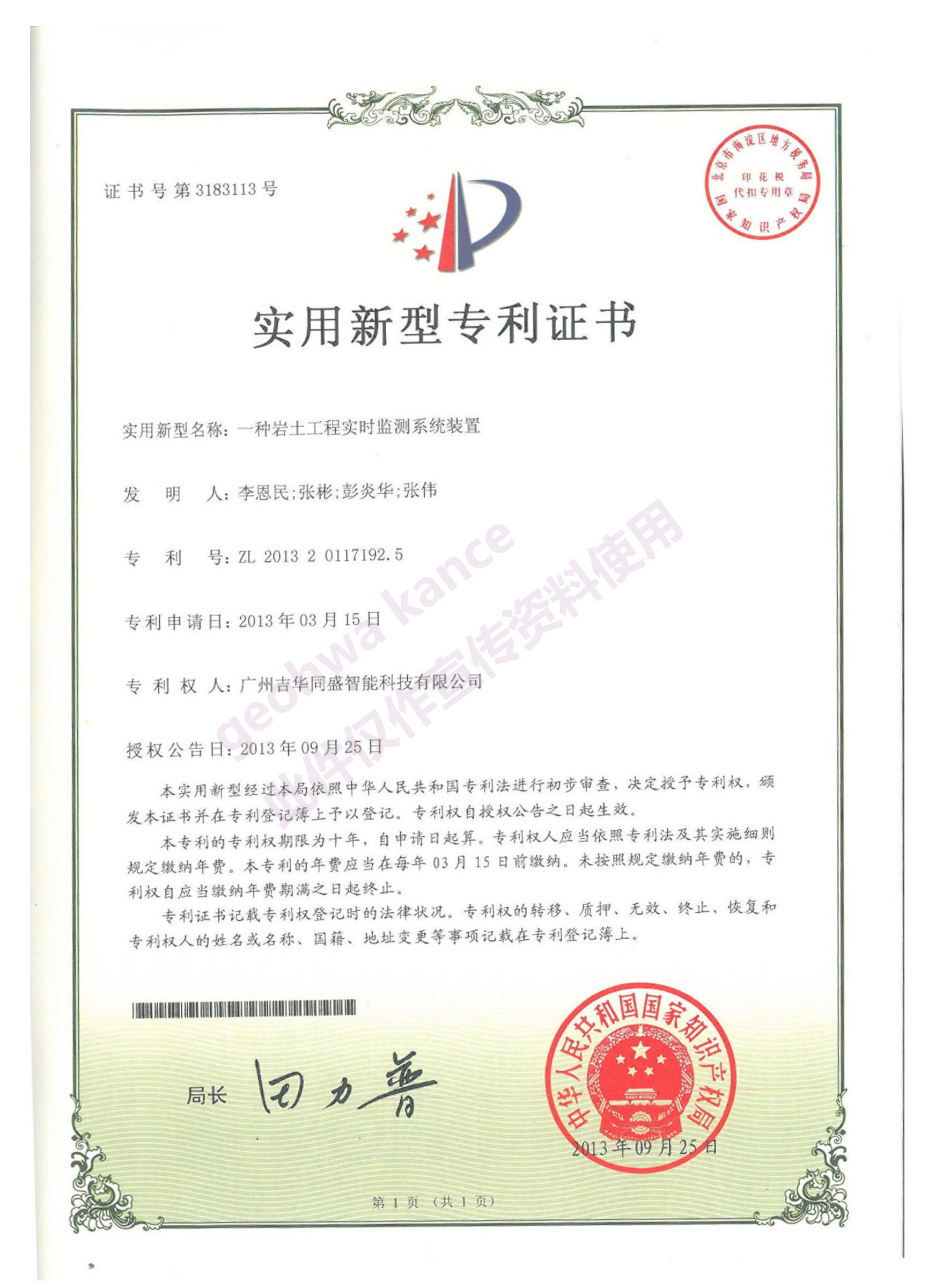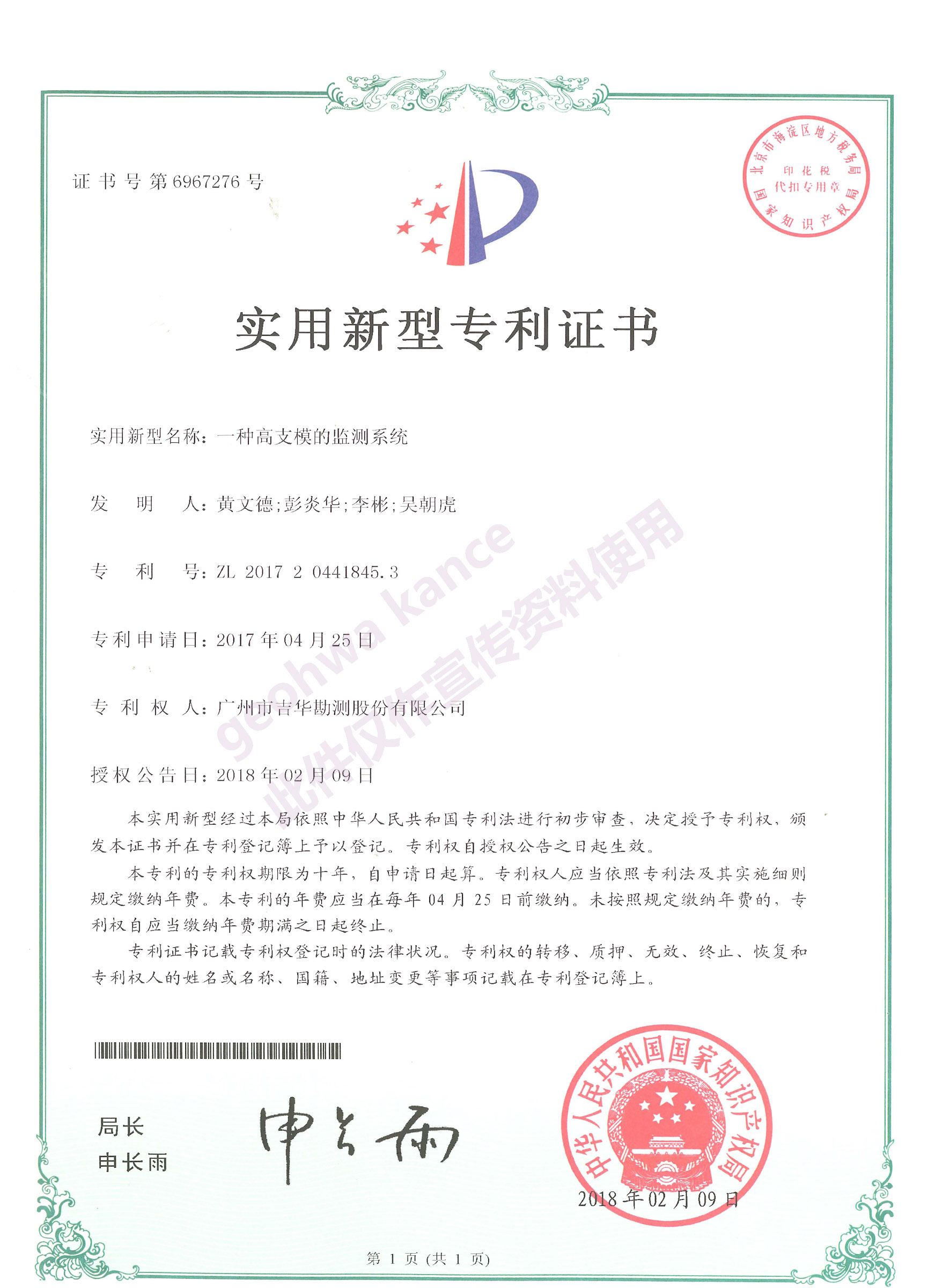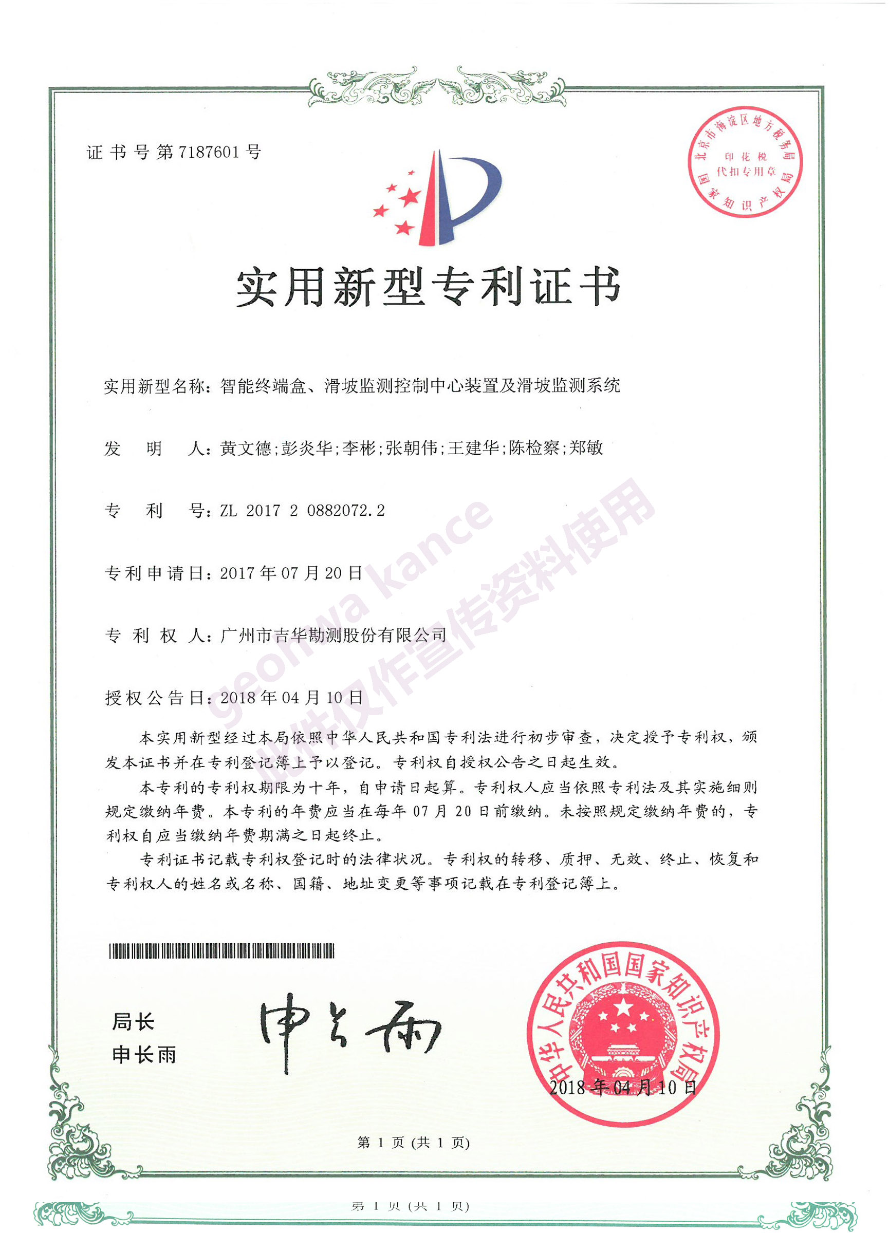 2015年被广州市科技创新委员会认定为广州市企业研究开发机构,多年来,吉华勘测致力于工程安全监测方向的技术研究及产品开发,注重产品的研发投入,掌握多项核心专利技术,实现多项技术创新,目前拥有12项专利6项软著证书,为国家认证的“高新技术企业”。