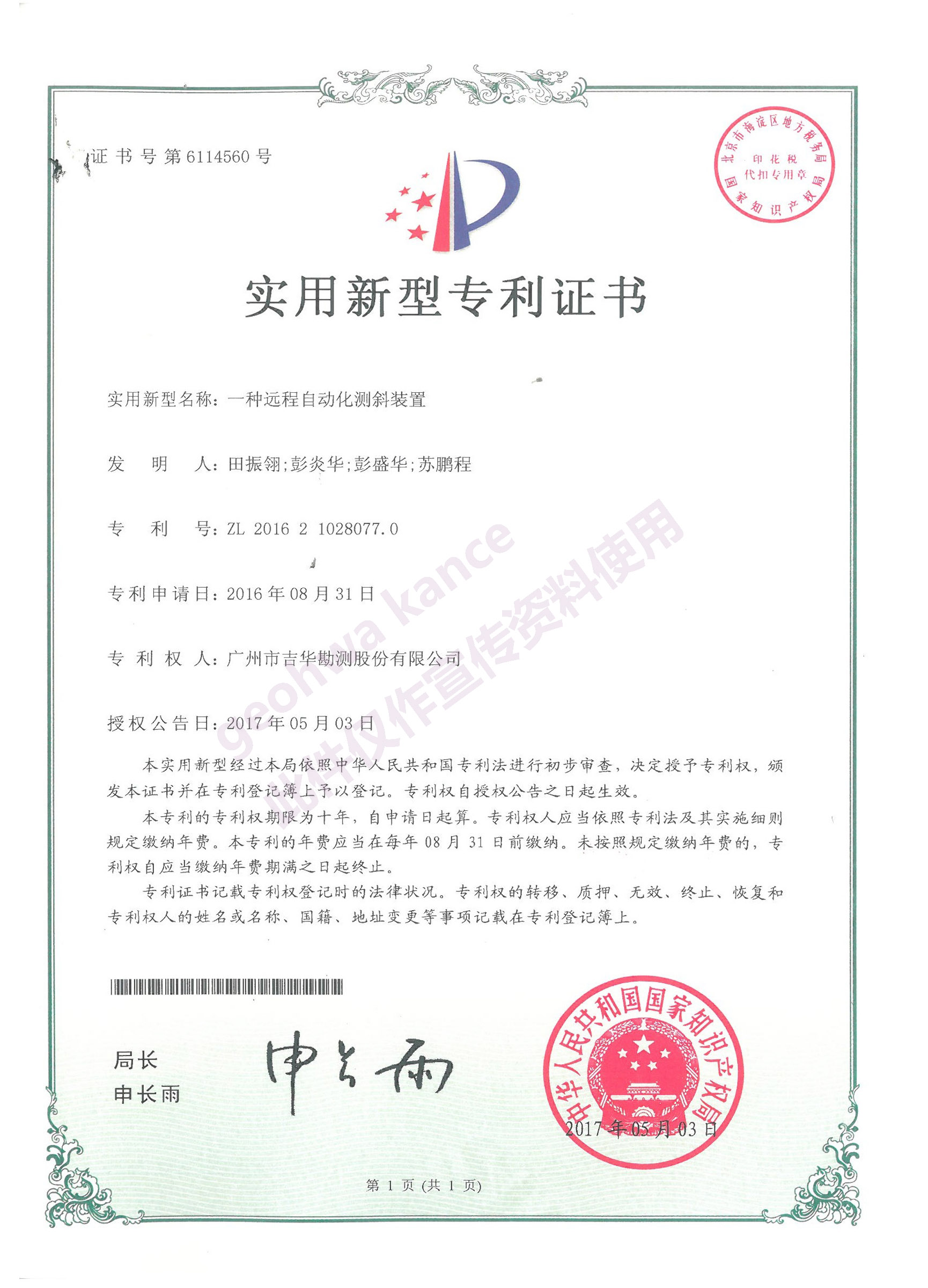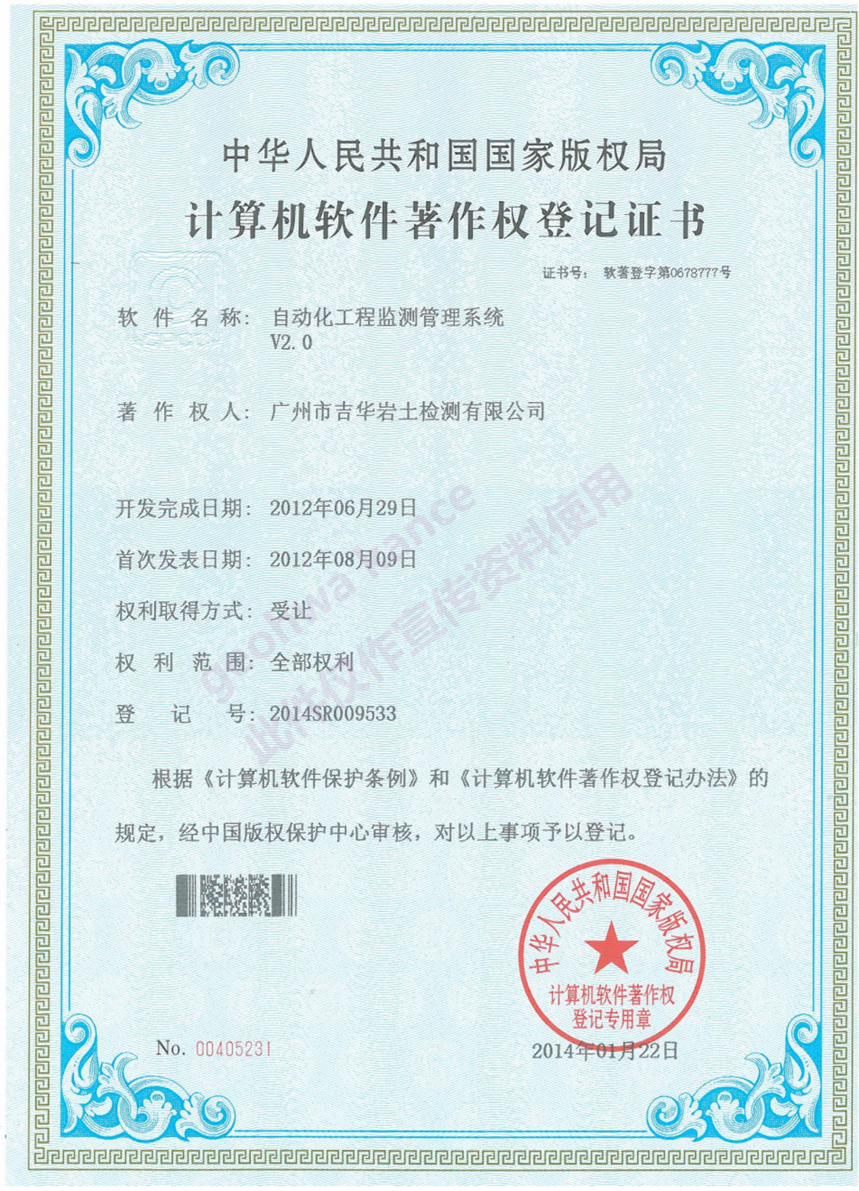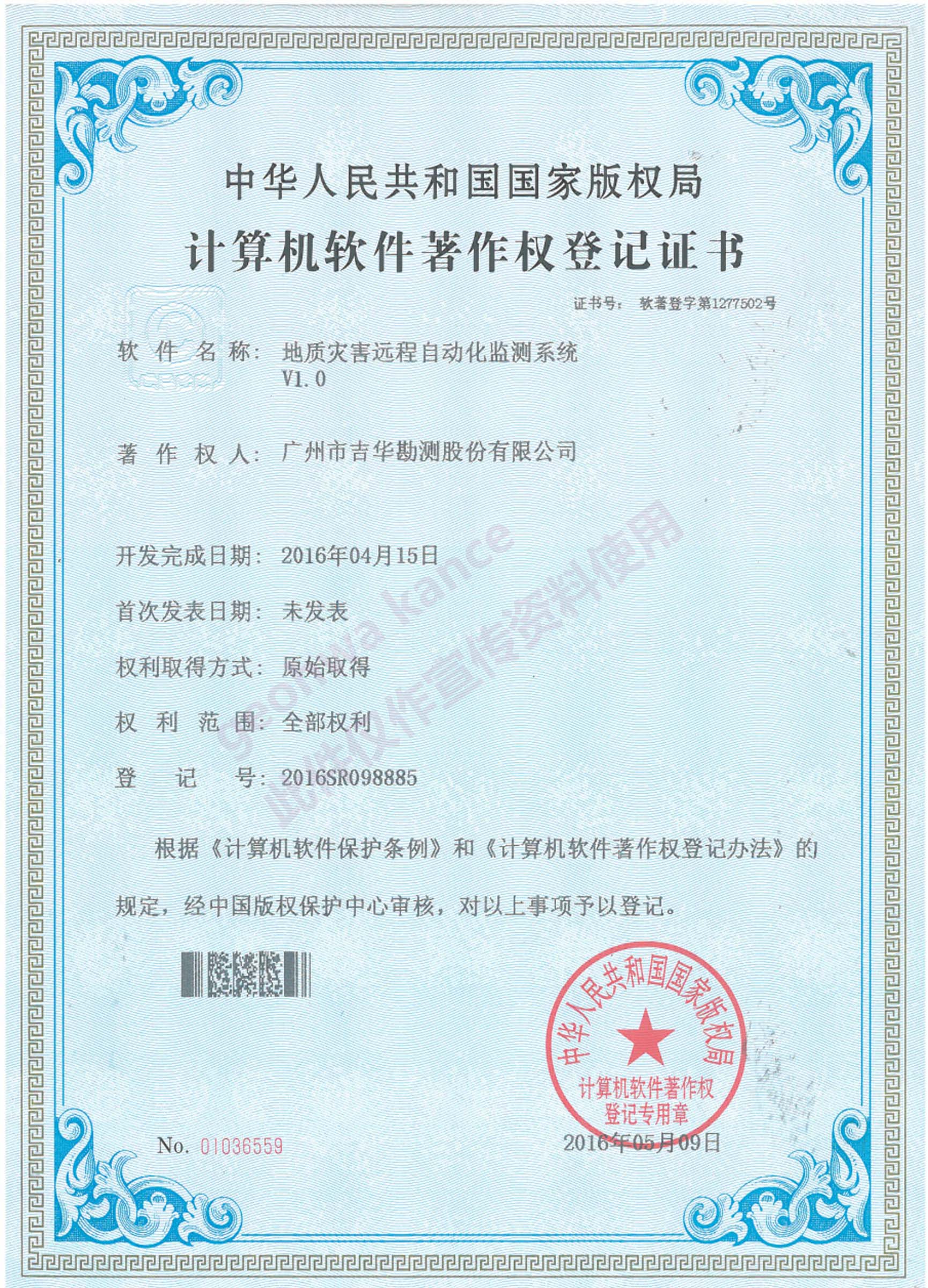 2015年被广州市科技创新委员会认定为广州市企业研究开发机构,多年来,吉华勘测致力于工程安全监测方向的技术研究及产品开发,注重产品的研发投入,掌握多项核心专利技术,实现多项技术创新,目前拥有12项专利6项软著证书,为国家认证的“高新技术企业”。