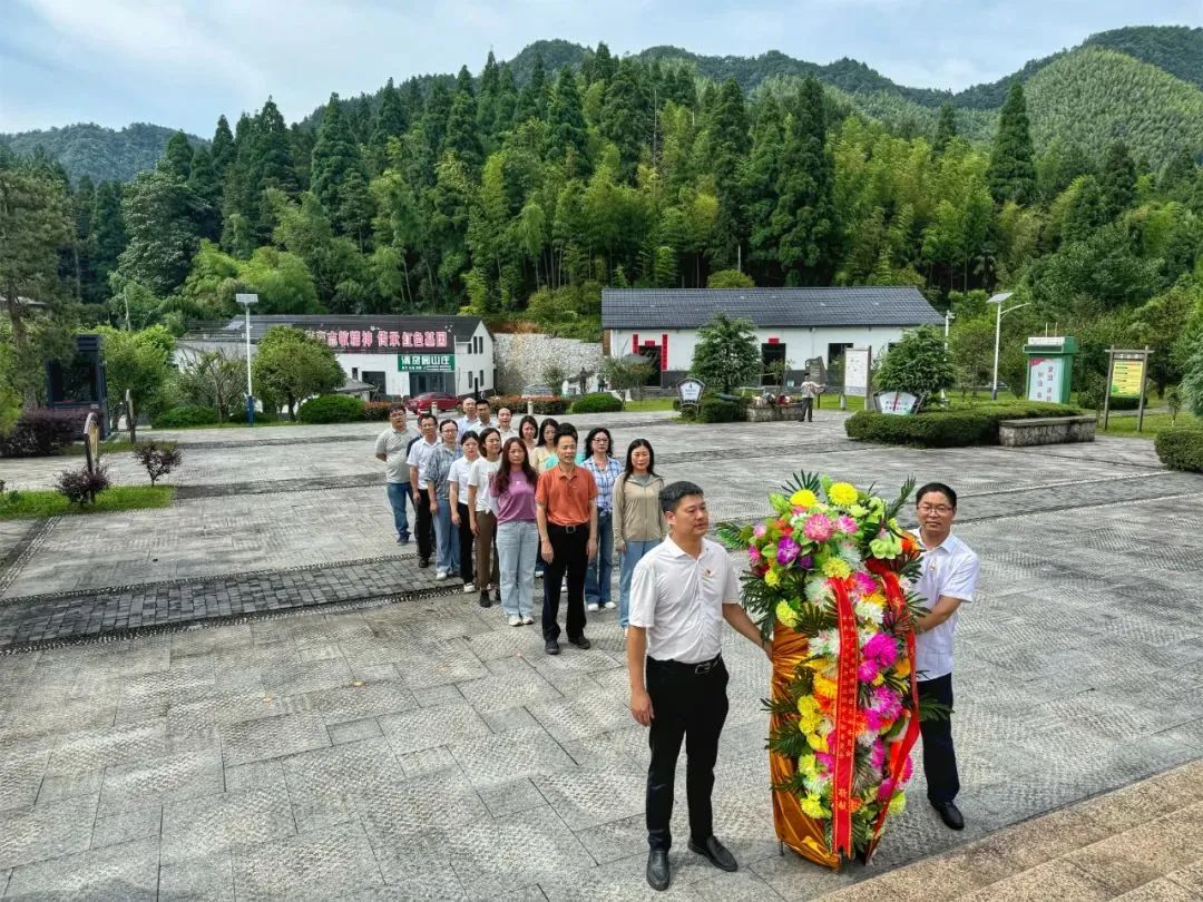 随后,全体人员前往怀玉山红色教育基地,这里是方志敏同志率领的北上抗日先遣队最后战斗的红色沃土。大家依次瞻仰了中国工农红军北上抗日先遣队纪念碑、清贫园,旗山战壕和纪念馆,认真聆听方志敏同志带领中国工农红军北上抗日先遣队浴血奋战、视死如归的红色故事。在庄严的革命烈士纪念碑前,全体党员肃立,向纪念碑敬献花圈,整理挽联,默哀,深切缅怀为革命事业前赴后继、英勇献身的革命烈士。