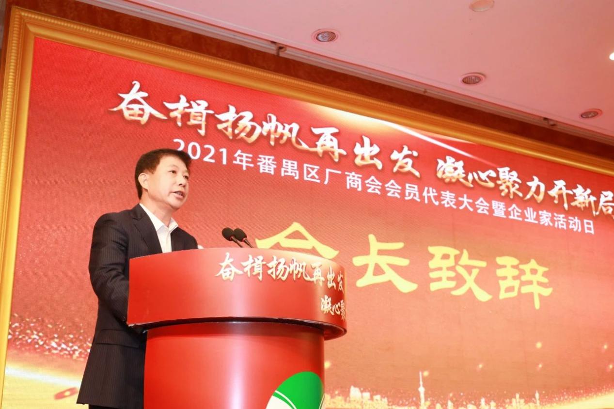 番禺区厂商会会长庄炳武在活动中致辞。他表示,去年在番禺区委、区政府的正确领导下,番禺区厂商会坚守创会初心、传承立会宗旨,创新服务方式,多措并举应对新冠疫情,助力企业复工复产,为番禺区“六稳”“六保”工作交出了一份比较满意的成绩单。其中包括:在防疫物资最为紧缺期间,为复工复产企业购买口罩超过59万个,各企业累计捐款近5000万元、捐赠防护物资2亿多元;举办各类政策宣讲会10多场次,帮助企业用好政策。