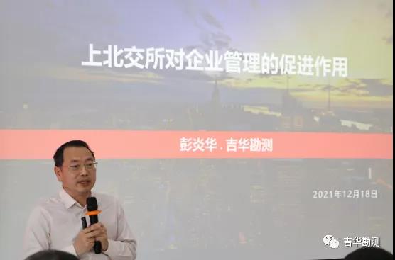广州市吉华勘测股份有限公司董事长彭炎华先生作《北交所对企业管理的促进作用》的主题报告