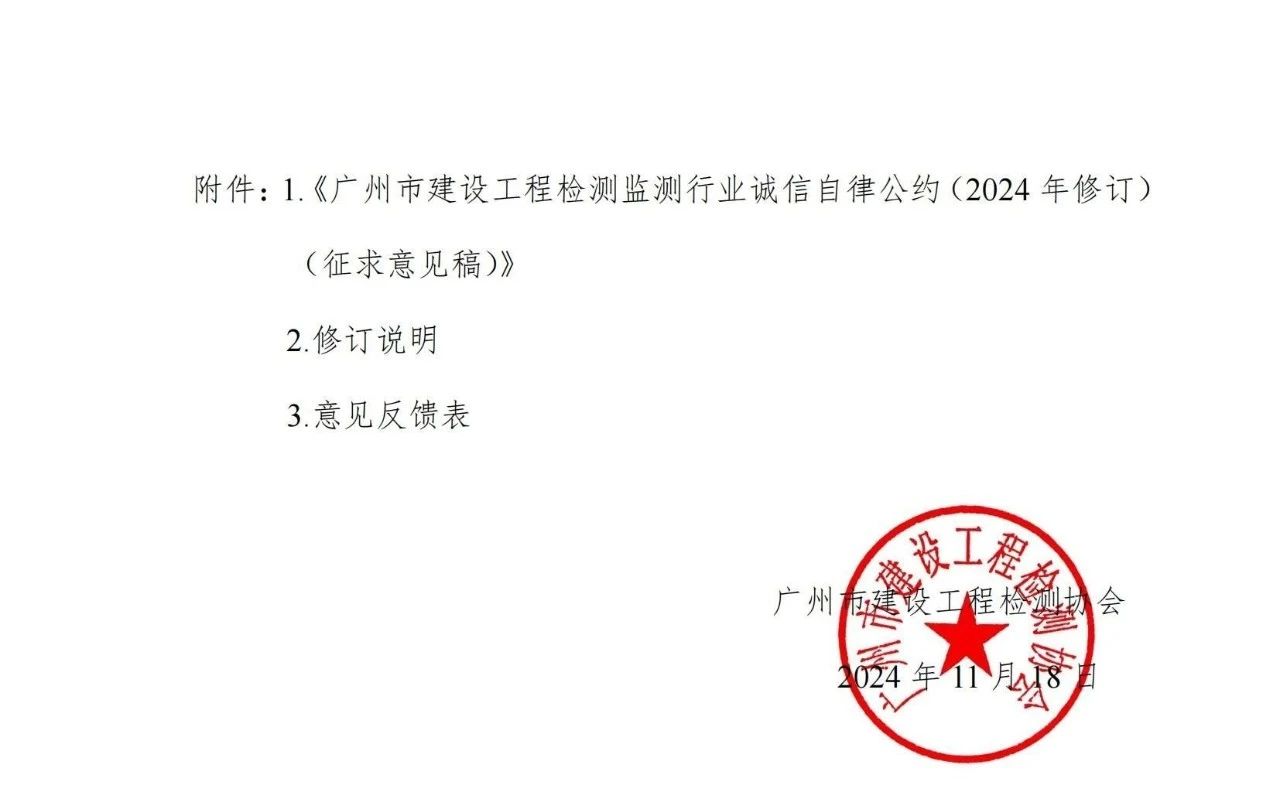 资讯 | 广州市建设工程检测协会就《广州市建设工程检测监测行业自律公约(2024年修订)》向社会征求意见