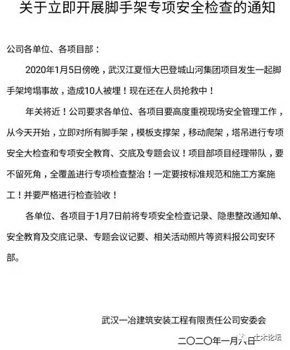 武汉市江夏区建筑管理站下发紧急文件,要求全区项目全面停工,深刻吸取1.5坍塌事故教训,开展隐患大排查工作!