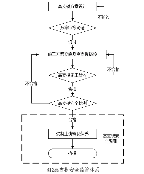 由以上坍塌模式和原因可知,对高支模事故的防止工作是个包含“设计—检测—施工—监测”的系统工程。高支模安全监管体系如图2-2-2所示。